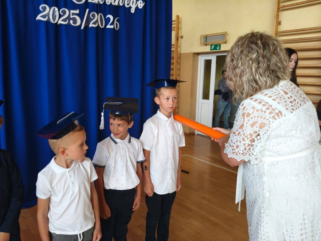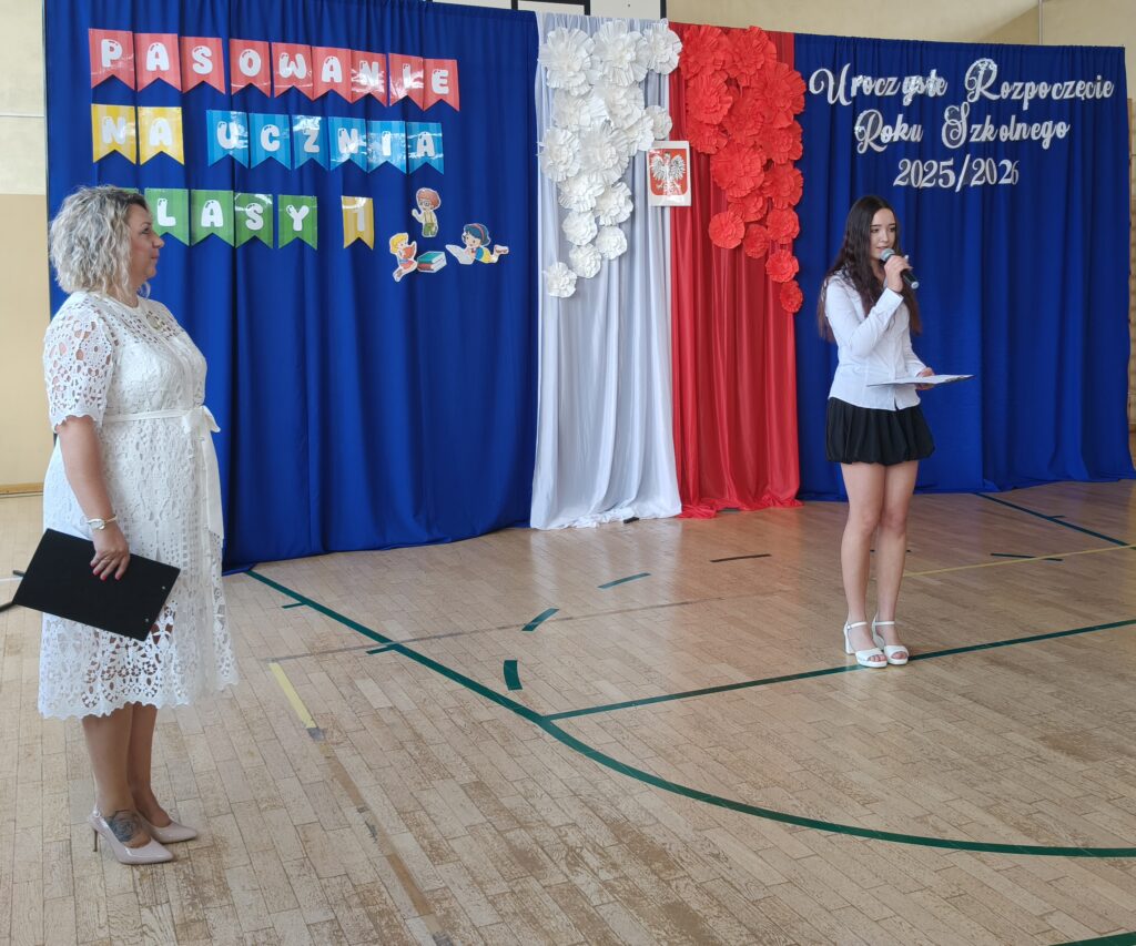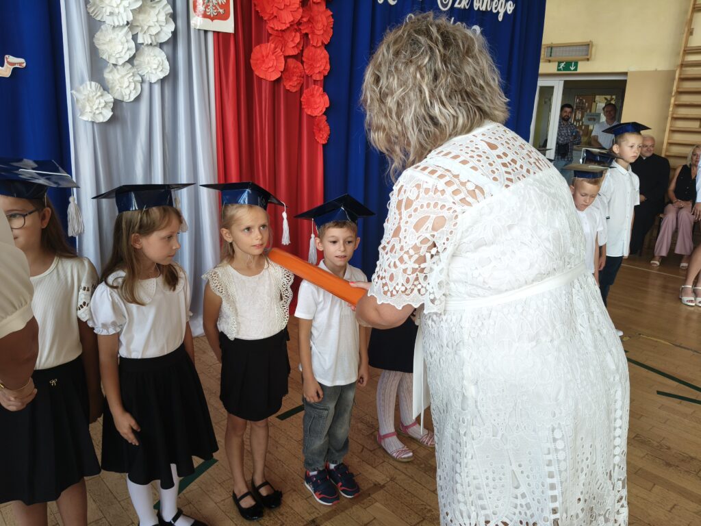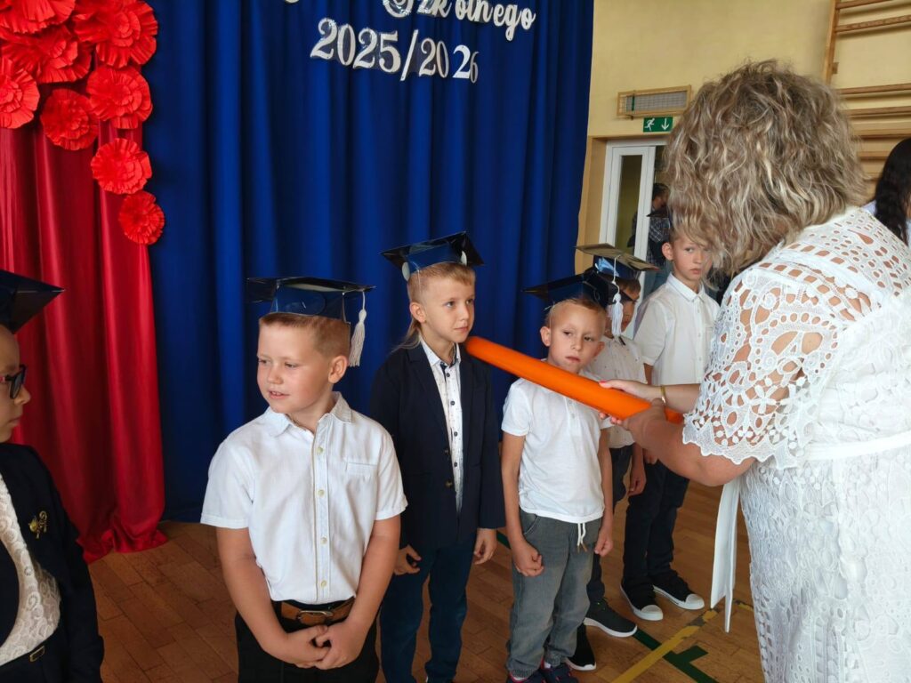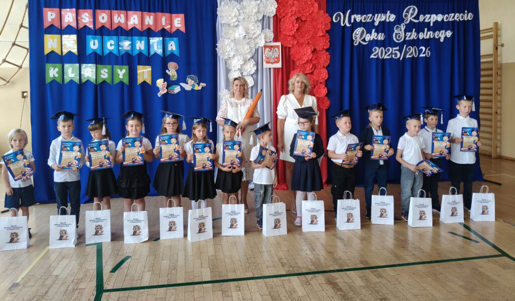 Dziś 01.09.2025 w Zespole Szkolno-Przedszkolnym w Bogucicach miała miejsce wyjątkowa uroczystość – inauguracja nowego roku szkolnego połączona z pasowaniem uczniów klasy pierwszej. To podniosłe wydarzenie zgromadziło całą społeczność szkolną, rodziców oraz zaproszonych gości. Najważniejszym momentem było symboliczne ślubowanie i pasowanie pierwszoklasistów, którzy z dumą dołączyli do grona uczniów naszej szkoły. Uroczystości przewodniczyła dyrektor Pani Sylwia Puchała, składając najmłodszym uczniom serdeczne życzenia wielu sukcesów, radości z odkrywania świata wiedzy oraz pięknych chwil spędzonych w murach szkoły.