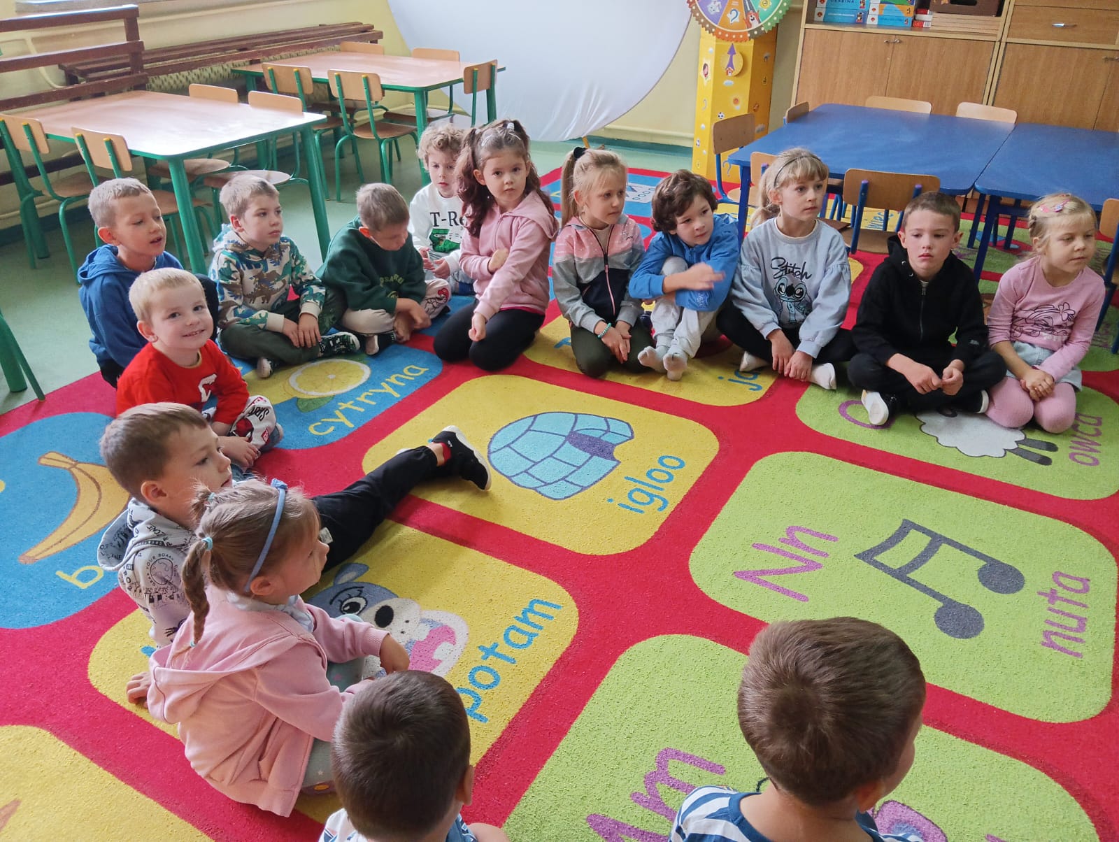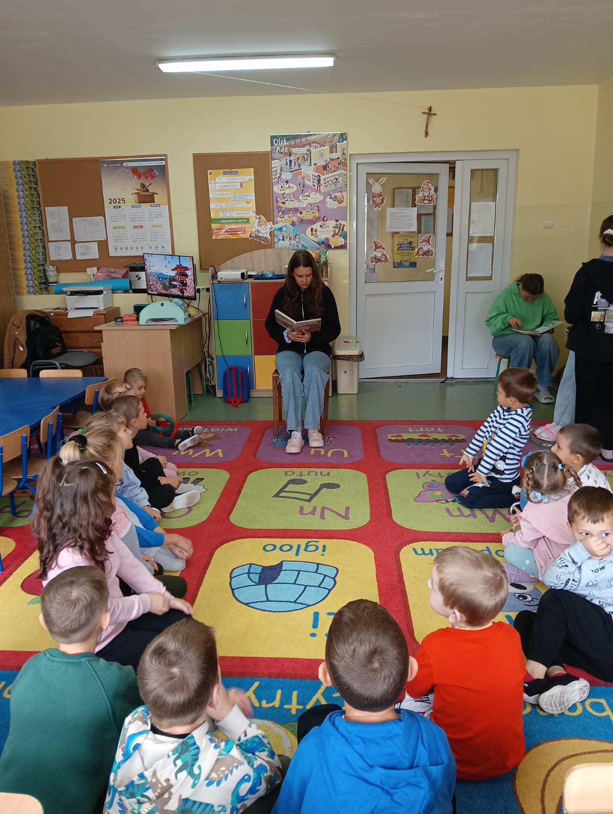 Starsze koleżanki z ogromnym zaangażowaniem czytały maluchom bajki i opowiadania. Dzieci słuchały ich z wielką uwagą, przenosząc się w świat pełen przygód i niezwykłych bohaterów. Spotkanie było okazją nie tylko do rozwijania wyobraźni, ale także do budowania więzi między młodszymi i starszymi uczniami.
