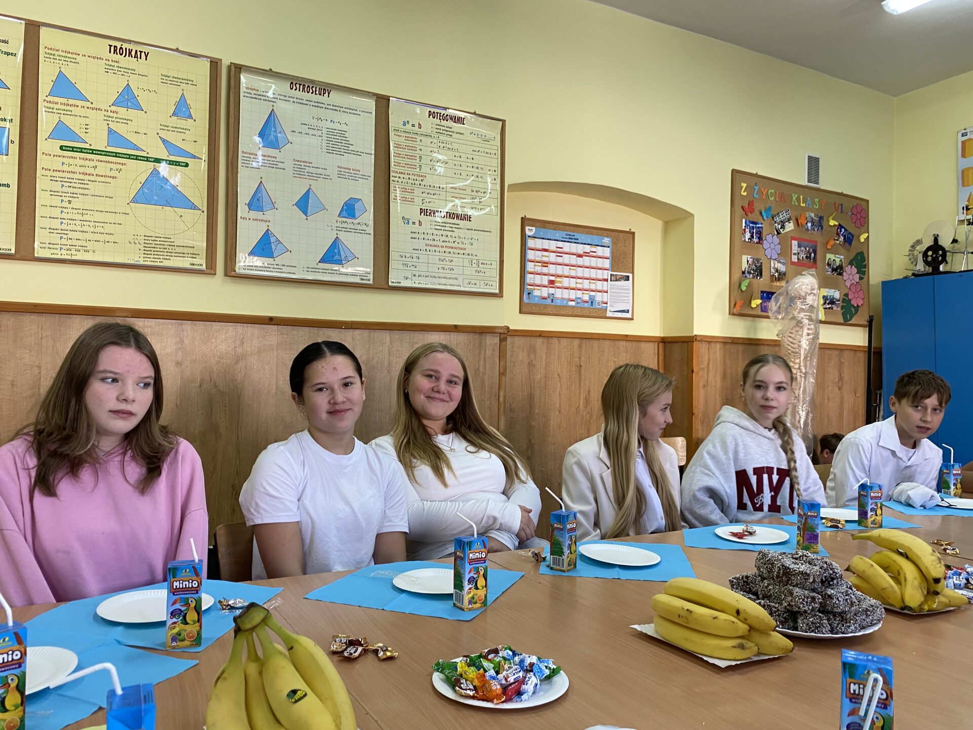 Z okazji Dnia Chłopaka dziewczęta z klasy 7 przygotowały dla swoich kolegów miłą niespodziankę. Chłopcy otrzymali worki z napisem „Najlepszy chłopak” oraz słodki upominek. Rodzice, dziewczęta i wychowawczyni zadbali także o poczęstunek – na stołach pojawiły się pyszne kokosanki, słodycze i świeże owoce. Był to dzień pełen uśmiechu, radości i wspólnej zabawy.
