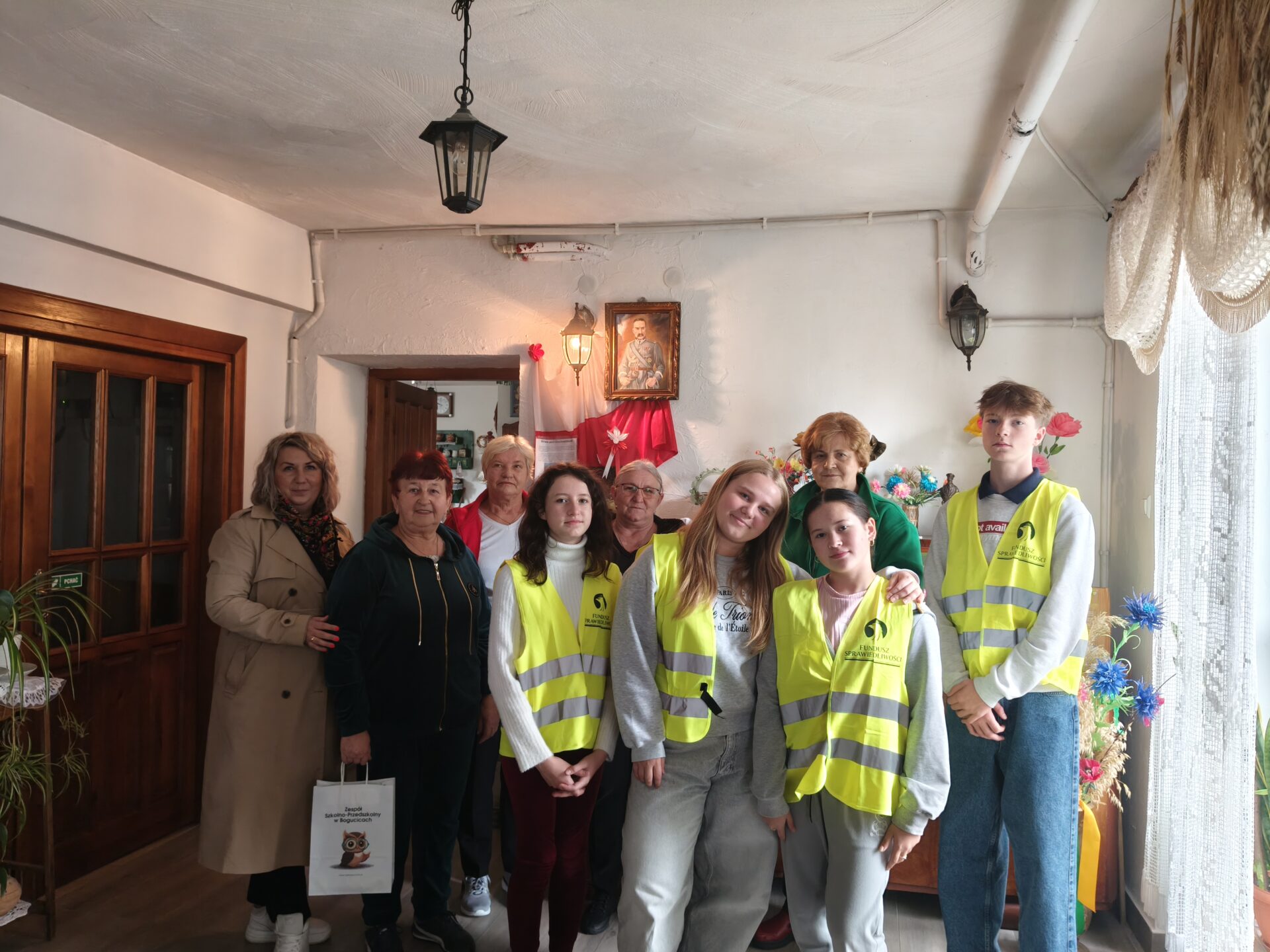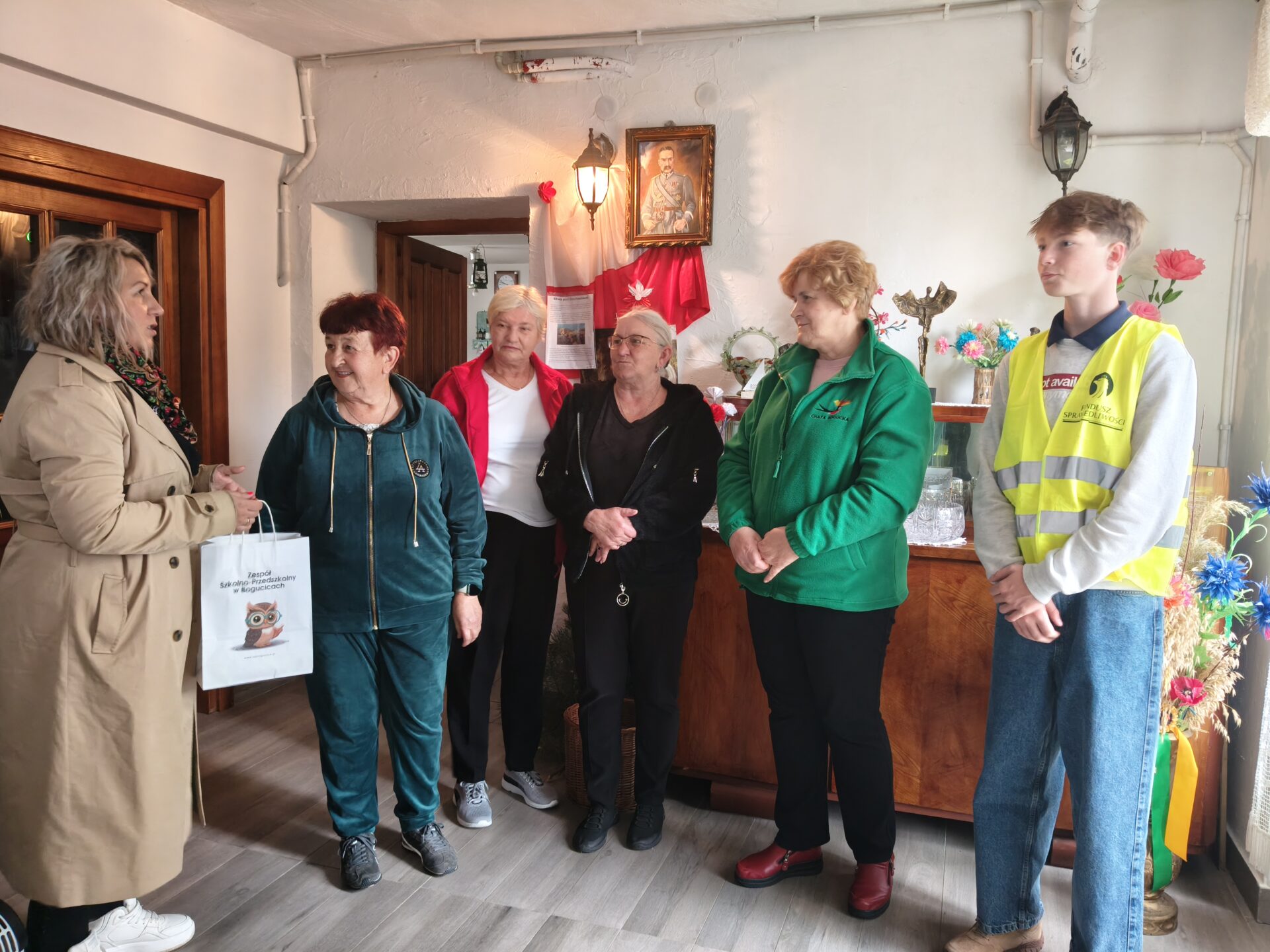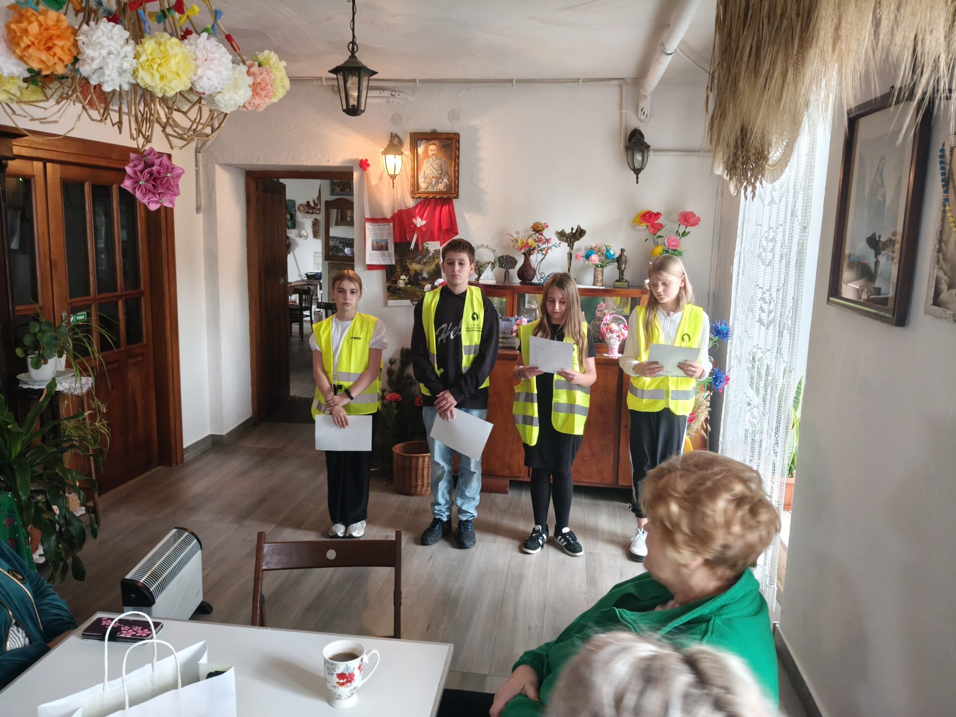 Dziś Zespół Szkolno-Przedszkolny odwiedził Chatę Bogucką, gdzie odbyła się wyjątkowa akcja „Odblaskowa dla Seniorów”. Uczniowie klasy V wraz z przedstawicielami Samorządu Uczniowskiego spotkali się z seniorami, by przypomnieć o bezpieczeństwie na drodze i znaczeniu noszenia odblasków.