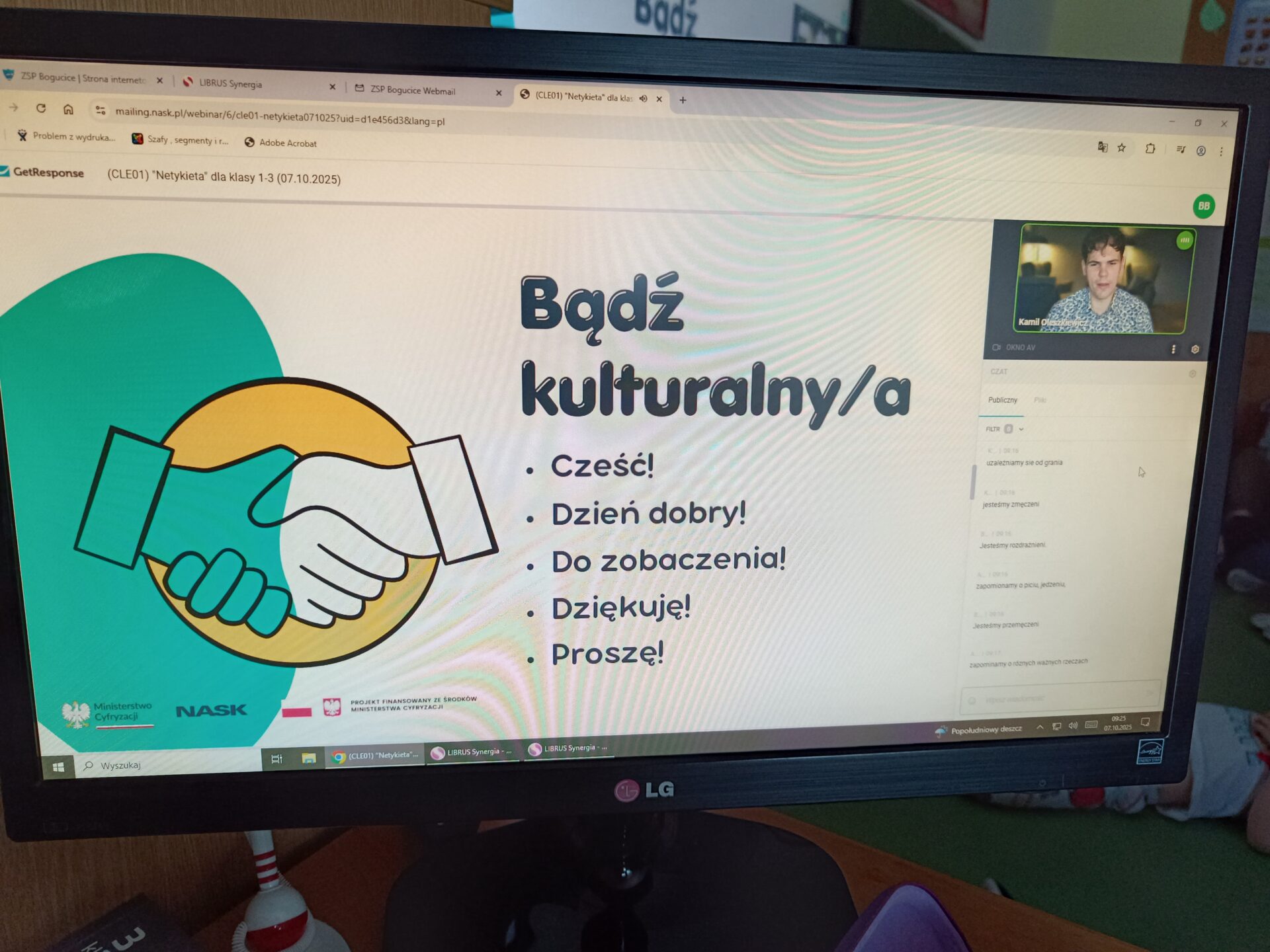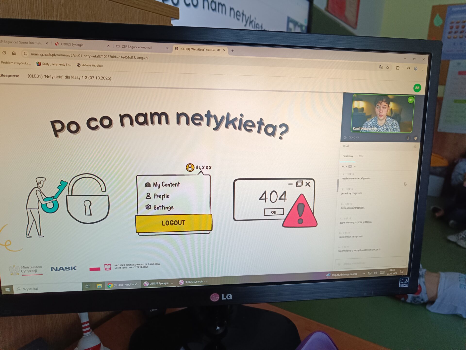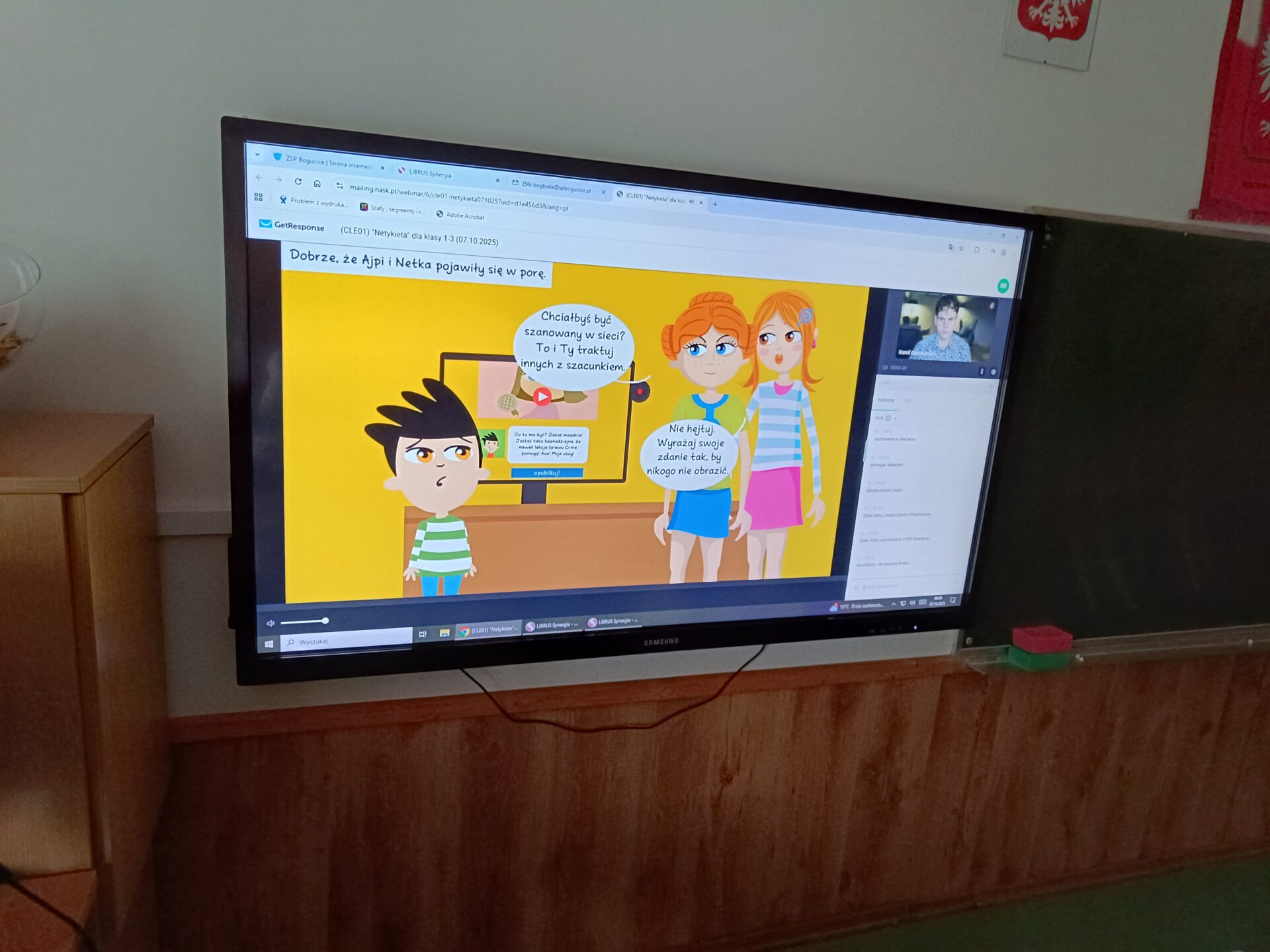 W ramach projektu „Cyberlekcje 3.0.” w dniu 07.10.2025r uczniowie klas I-III wzięli udział w webinarium dotyczącym wyjaśnienia słowa „Netykieta”.