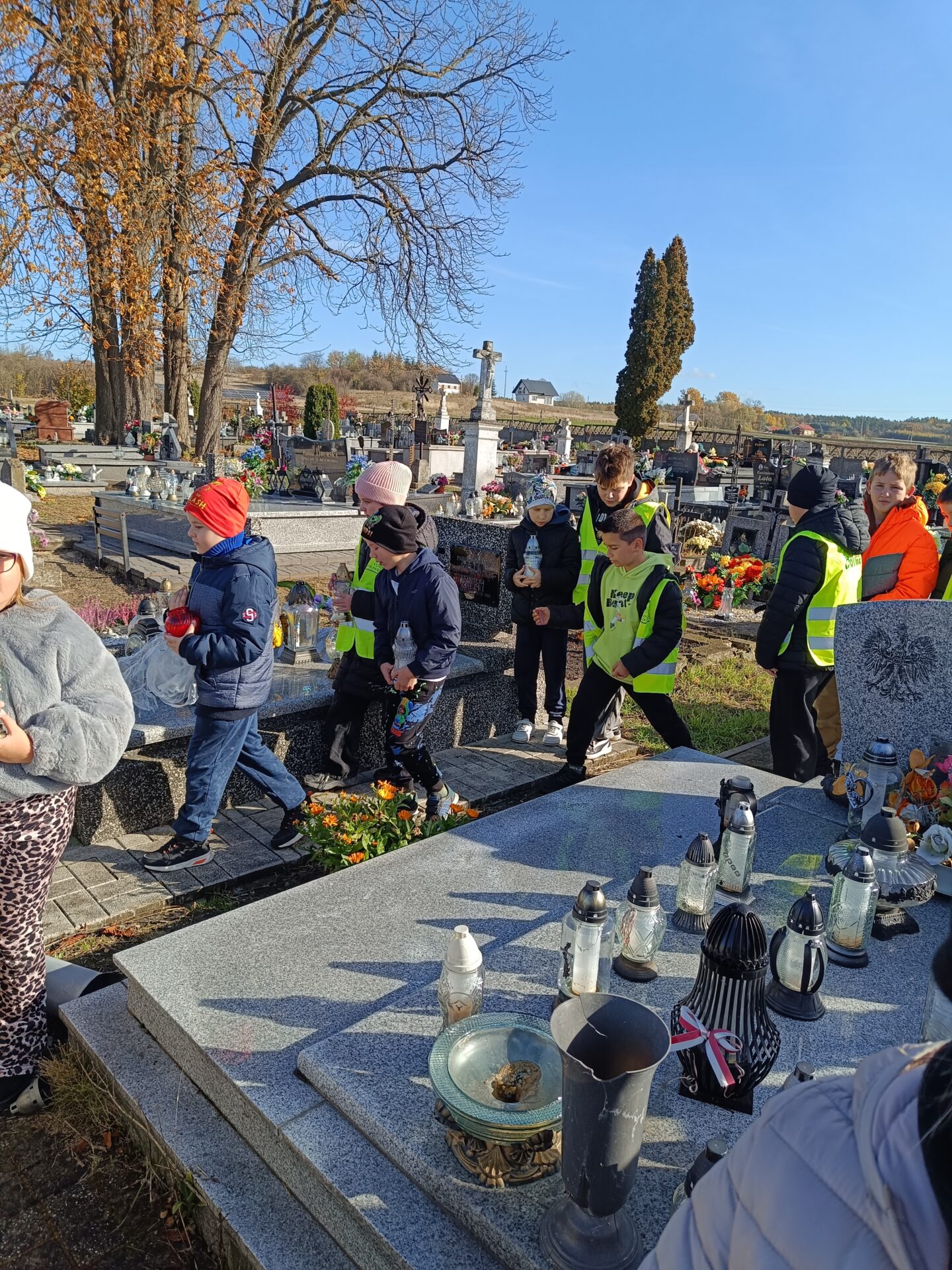 W dniu 29 października przedszkolaki oraz uczniowie klas I-VIII odwiedzili pobliski cmentarz. Dzieci zapaliły znicze na Grobie Nieznanego Żołnierza oraz uczciły minutą ciszy pamięć poległych. To była jedna z ważniejszych lekcji wychowania patriotycznego.