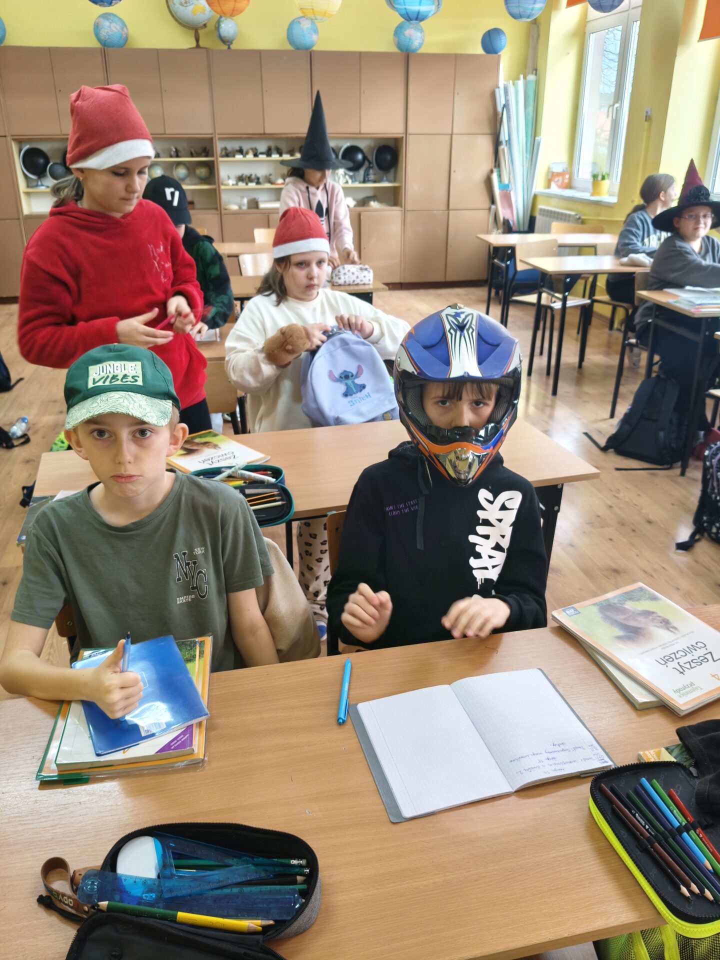 Samorząd Uczniowski Zespołu Szkolno – Przedszkolnego w Bogucicach zorganizował dziś zabawną akcję „Nietypowe Nakrycie Głowy”. Uczniowie przyszli w kreatywnych, często zaskakujących nakryciach – od śmiesznych kapeluszy po kaski czy durszlaki . Na korytarzach panowała świetna atmosfera, a cała szkoła bawiła się doskonale.