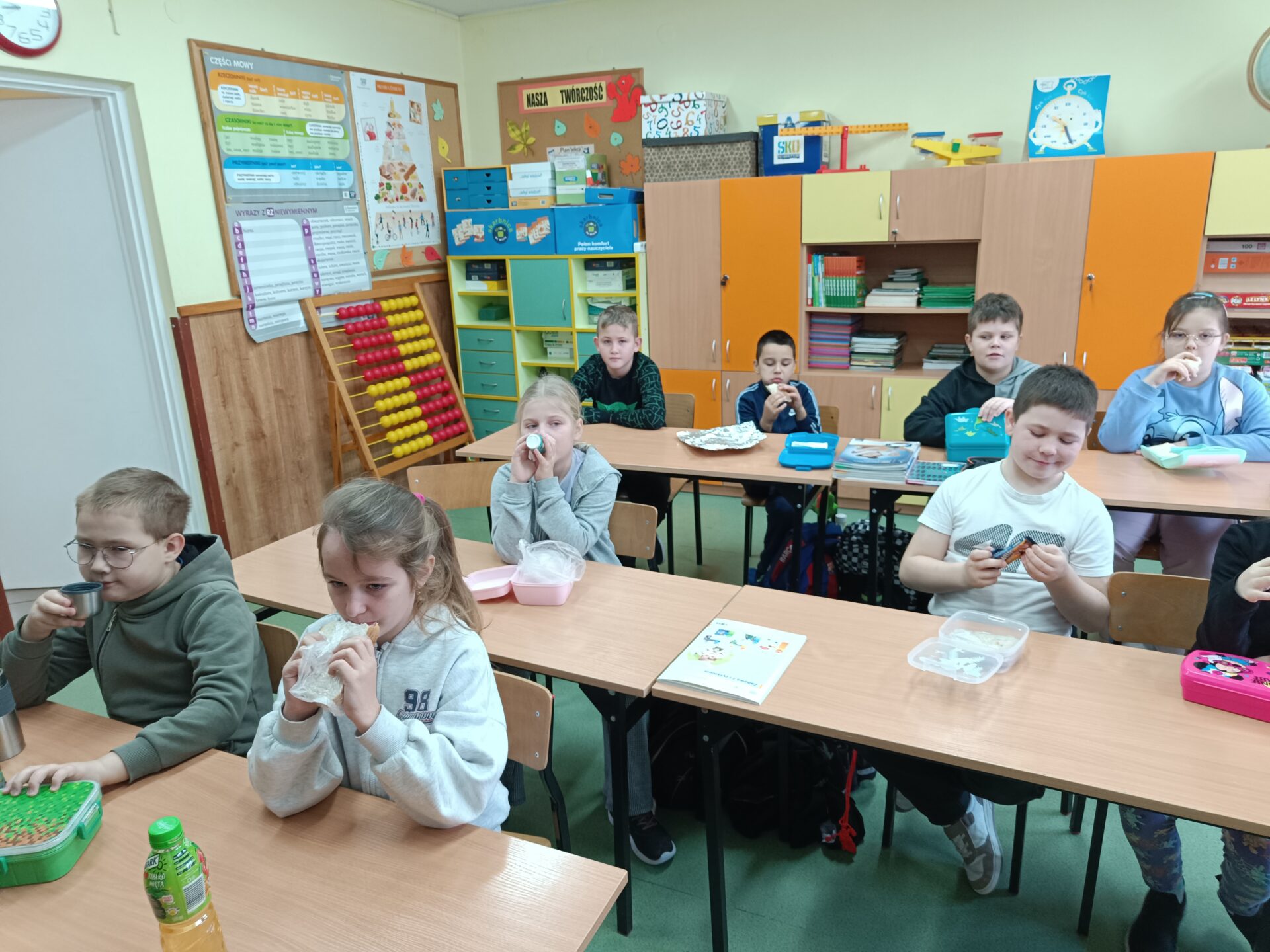 W wydarzeniu uczestniczyły klasy I–III. Nauczyciele przeprowadzili krótkie pogadanki na temat znaczenia śniadania, wartości odżywczych warzyw, owoców, nabiału oraz produktów pełnoziarnistych.