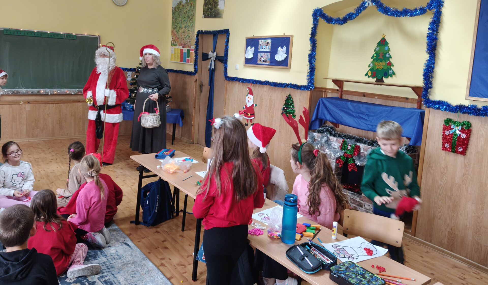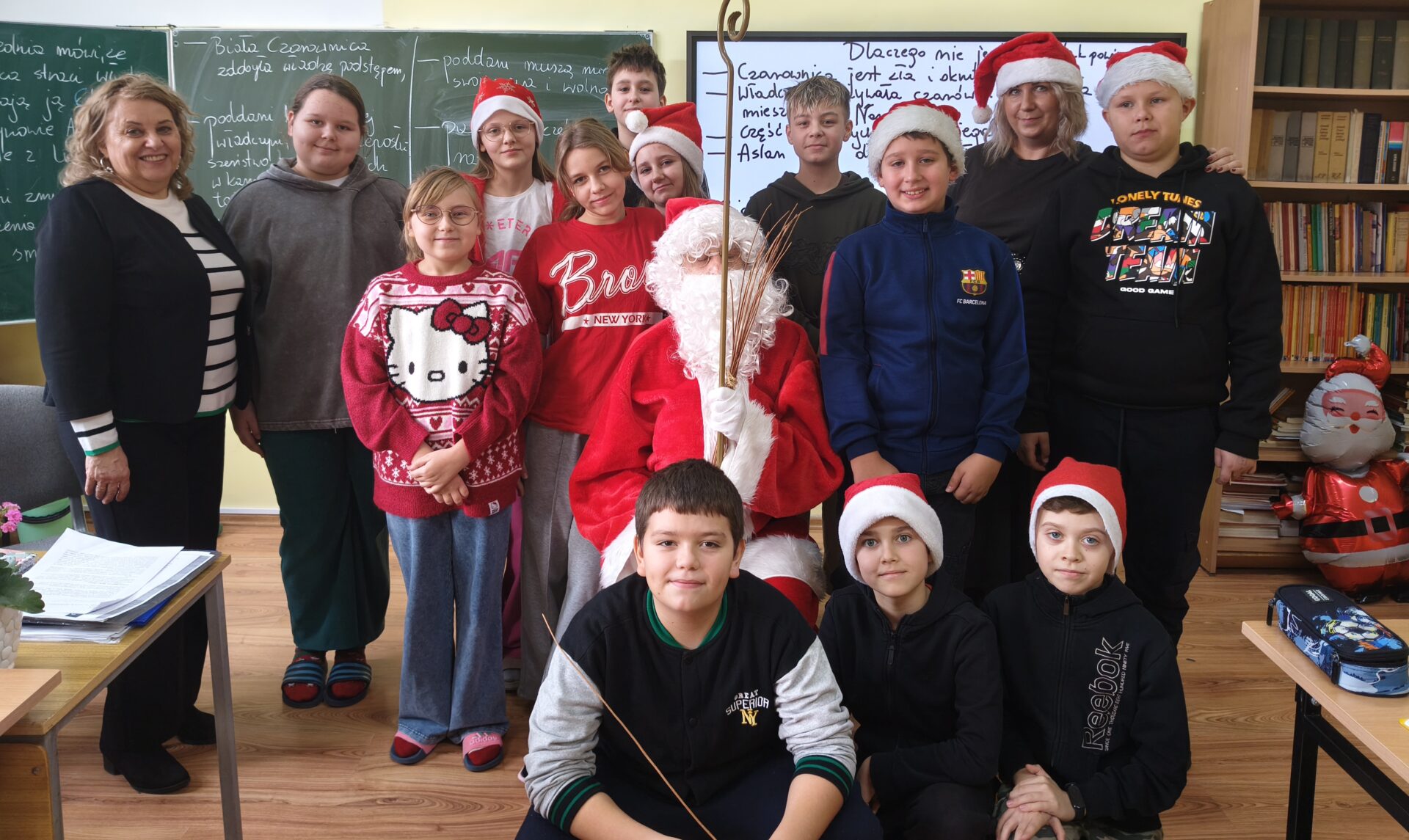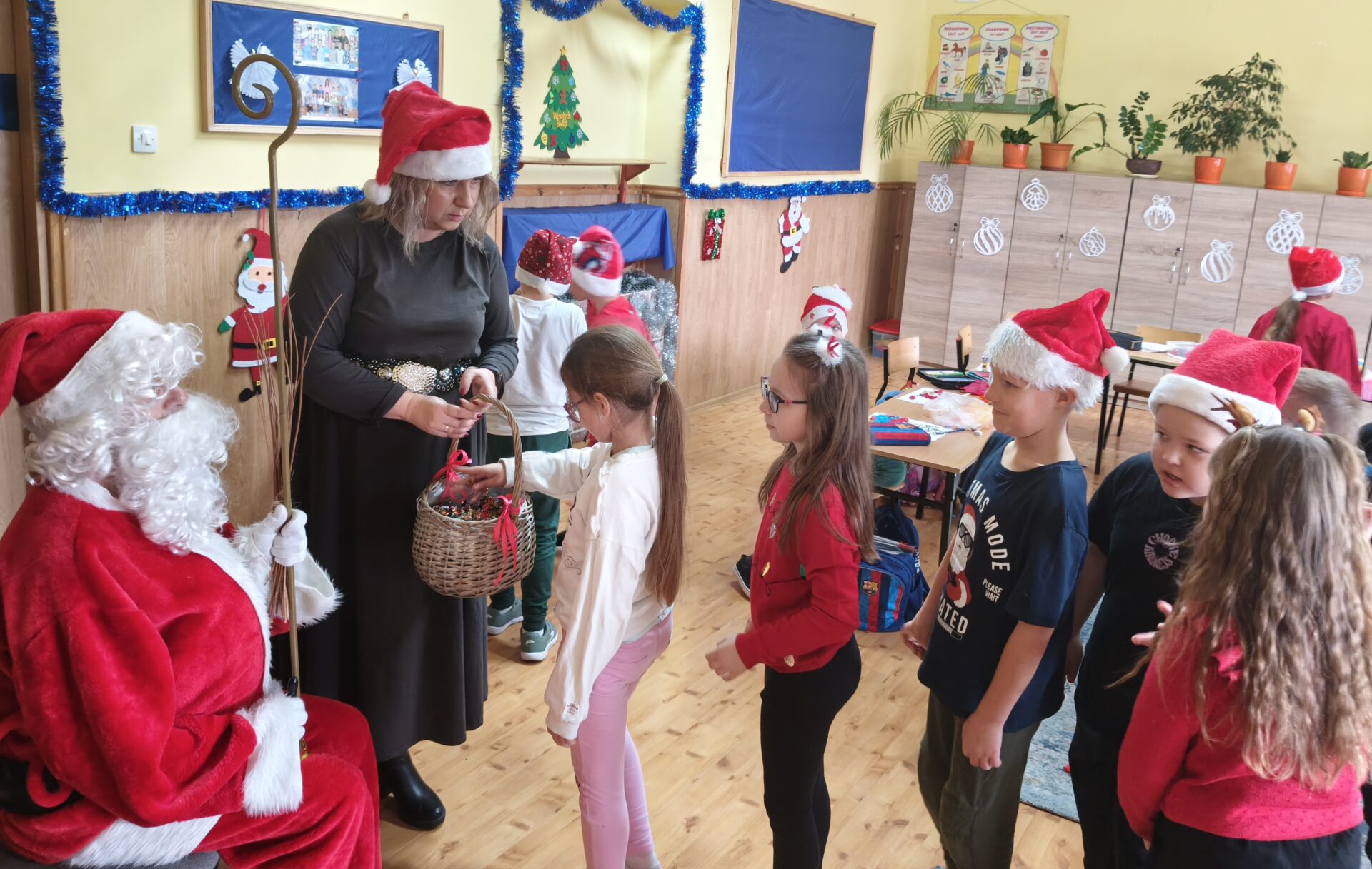 Dziś 5.12.2025 roku w Zespole Szkolno-Przedszkolnym w Bogucicach pojawił się Święty Mikołaj, który odwiedził wszystkie klasy, a następnie obdarował dzieci słodkimi upominkami. Spotkanie sprawiło uczniom dużo radości i wprowadziło wszystkich w świąteczny nastrój.