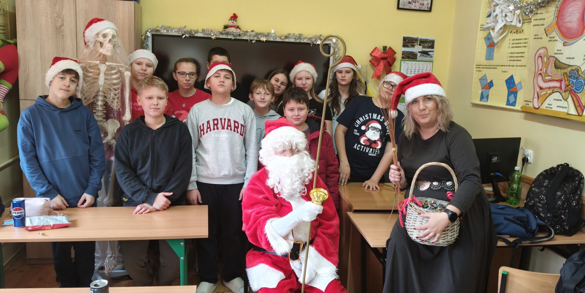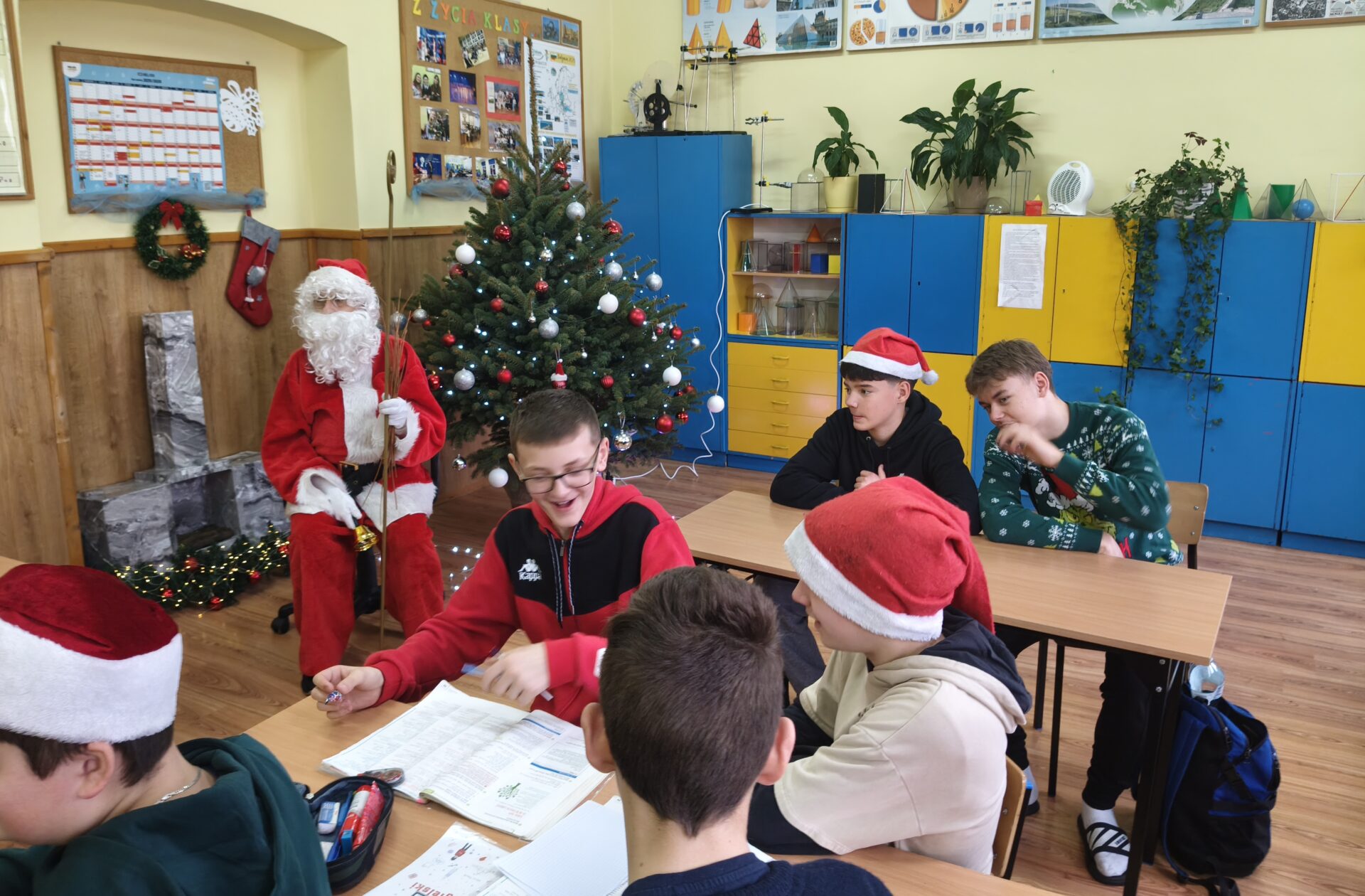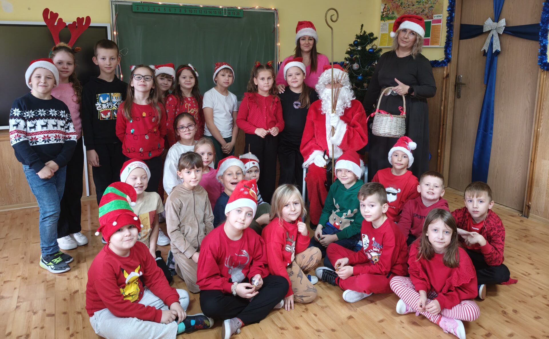 Dziś 5.12.2025 roku w Zespole Szkolno-Przedszkolnym w Bogucicach pojawił się Święty Mikołaj, który odwiedził wszystkie klasy, a następnie obdarował dzieci słodkimi upominkami. Spotkanie sprawiło uczniom dużo radości i wprowadziło wszystkich w świąteczny nastrój.