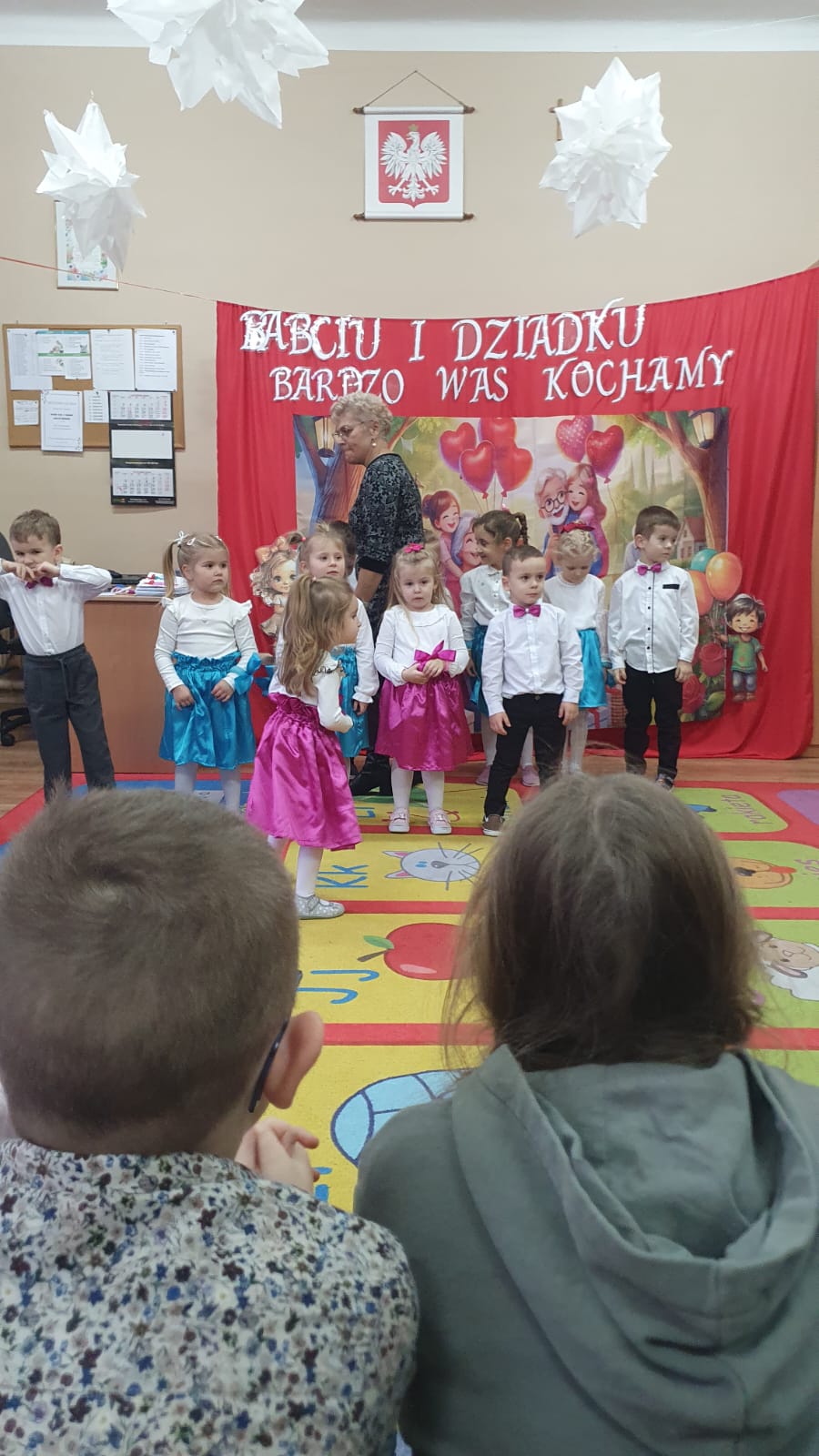 W przepięknej scenografii oraz wyjątkowej atmosferze, wnuczęta wspaniale wystąpiły przed bliskimi, następnie przedszkolaki zaprosiły babcie i dziadków na słodki poczęstunek przygotowany przez rodziców, aby w szczególny sposób okazać swoim bliskim szacunek i po raz kolejny podziękować za miłość, cierpliwość i zrozumienie.
