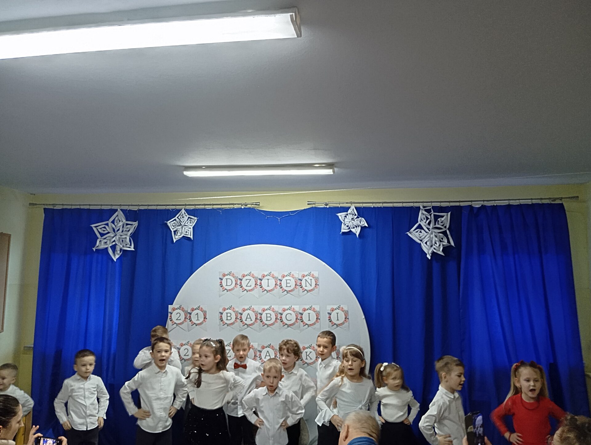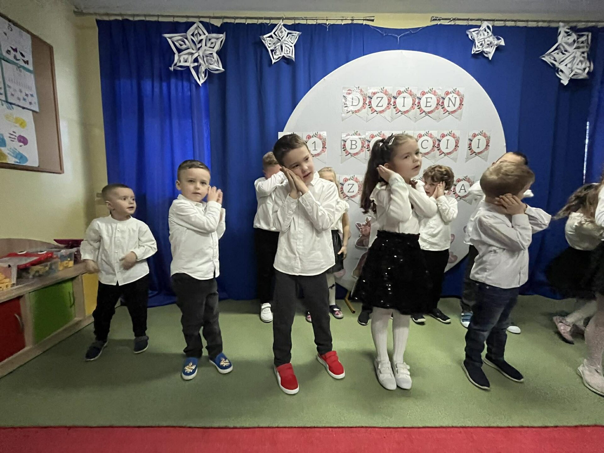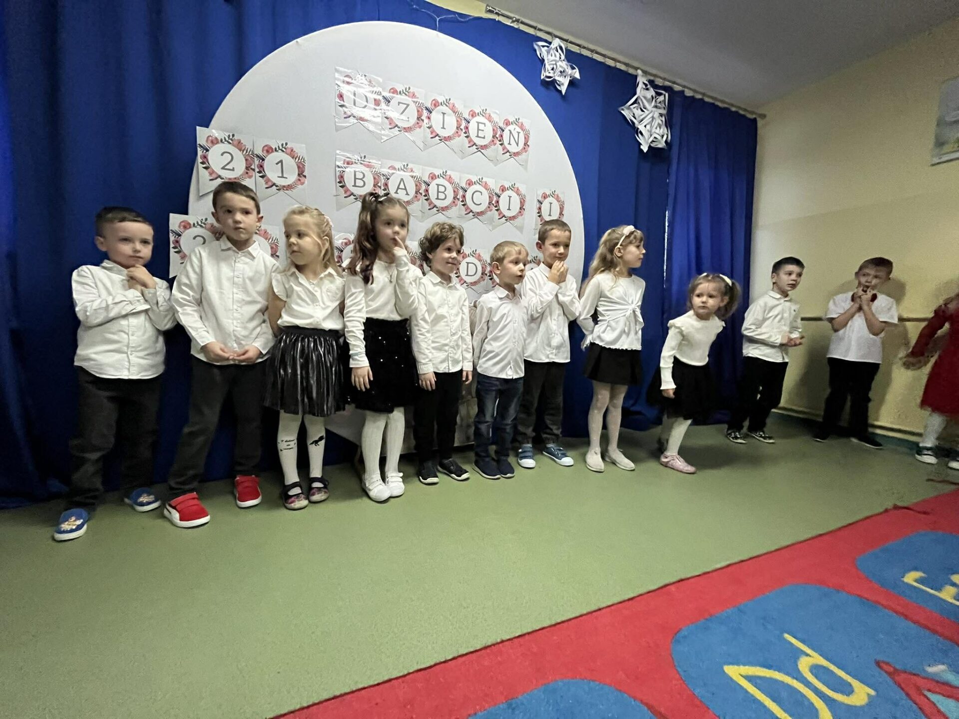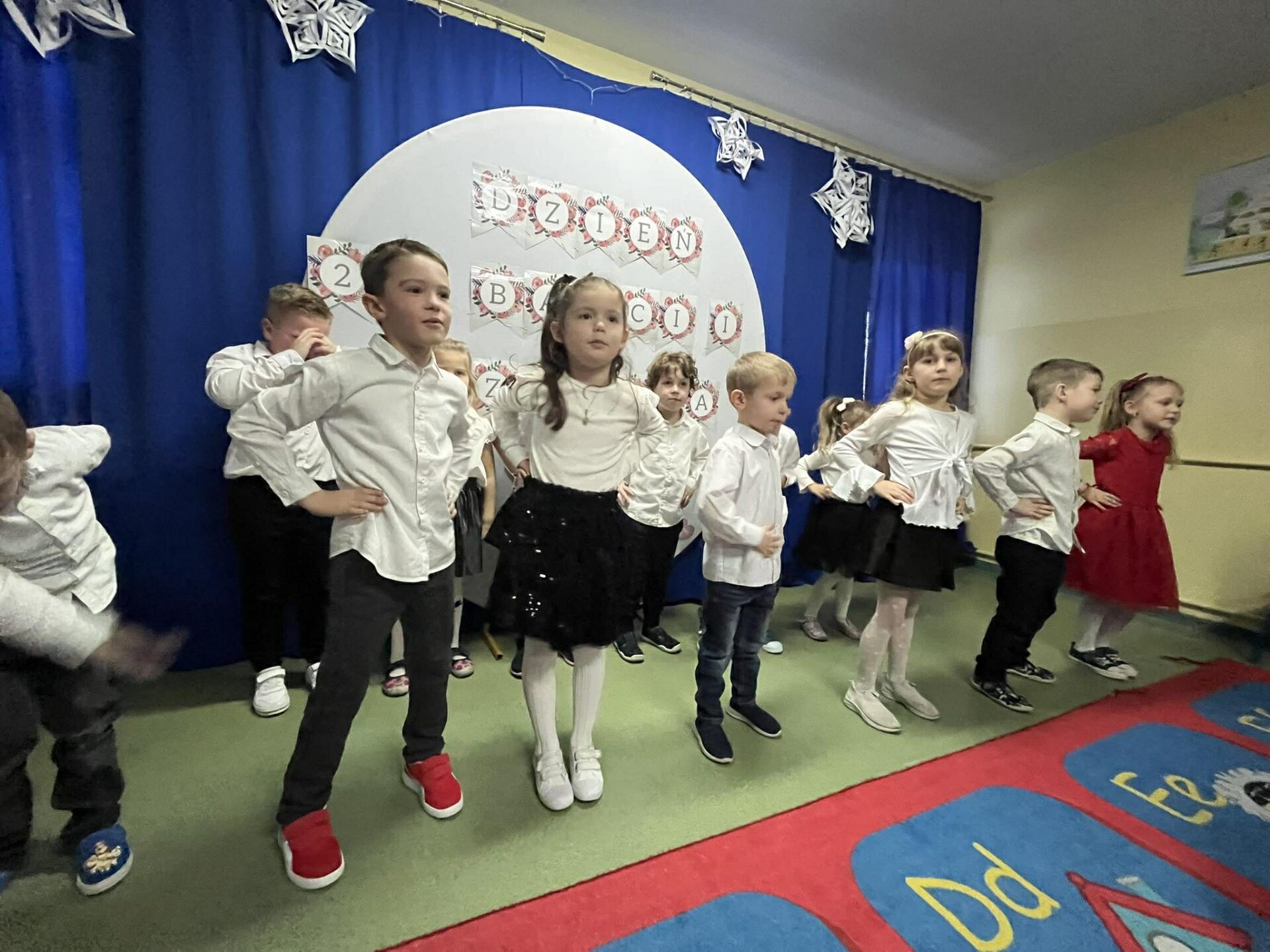 Dzień Babci i Dziadka w przedszkolu był pełen radości i wzruszeń. Uroczystość rozpoczęła się występami dzieci – były tańce, piosenki oraz krótkie wierszyki przygotowane specjalnie dla Babć i Dziadków. Przedszkolaki z ogromnym zaangażowaniem zaprezentowały swoje umiejętności, sprawiając wiele radości zaproszonym gościom.