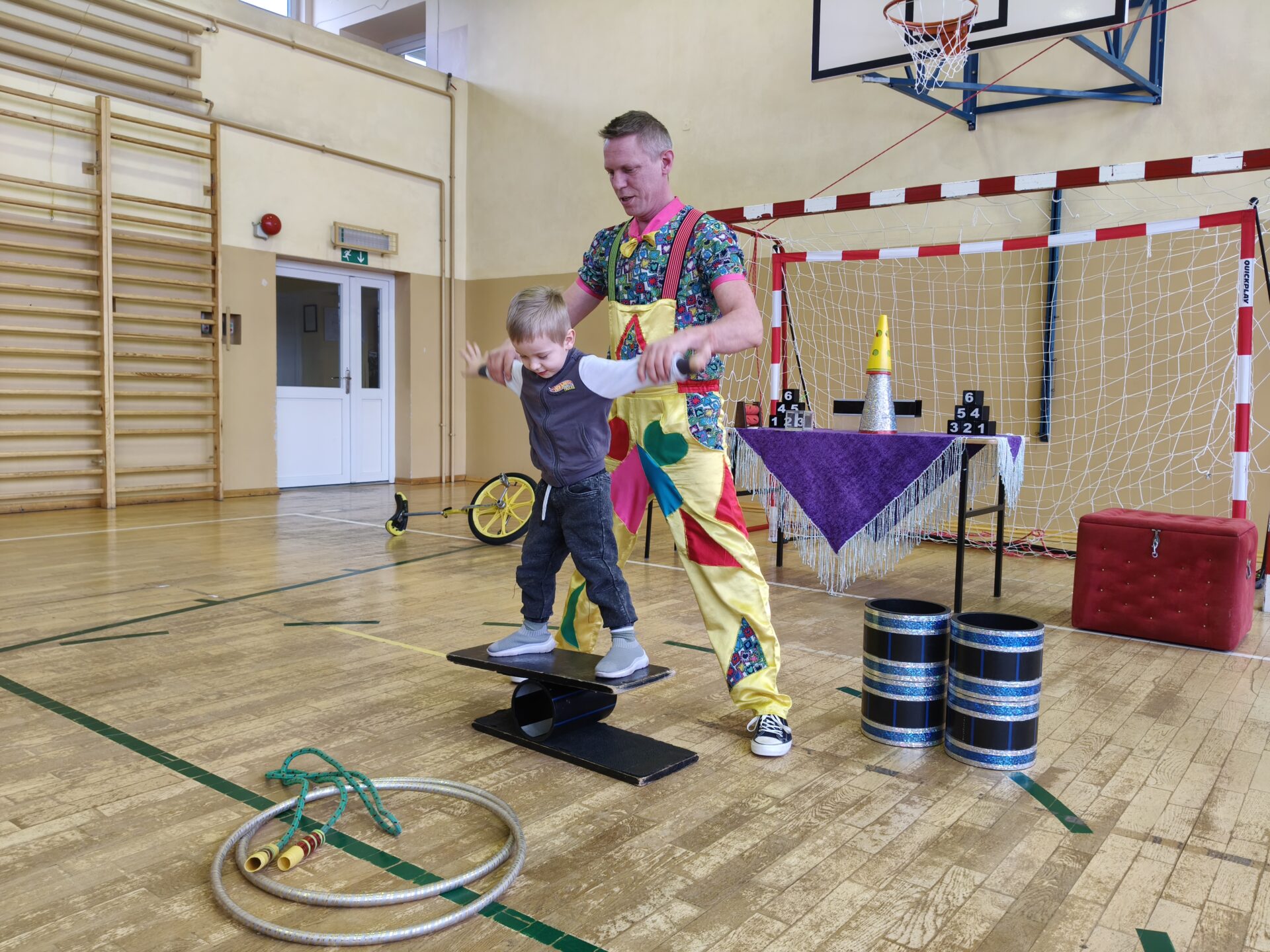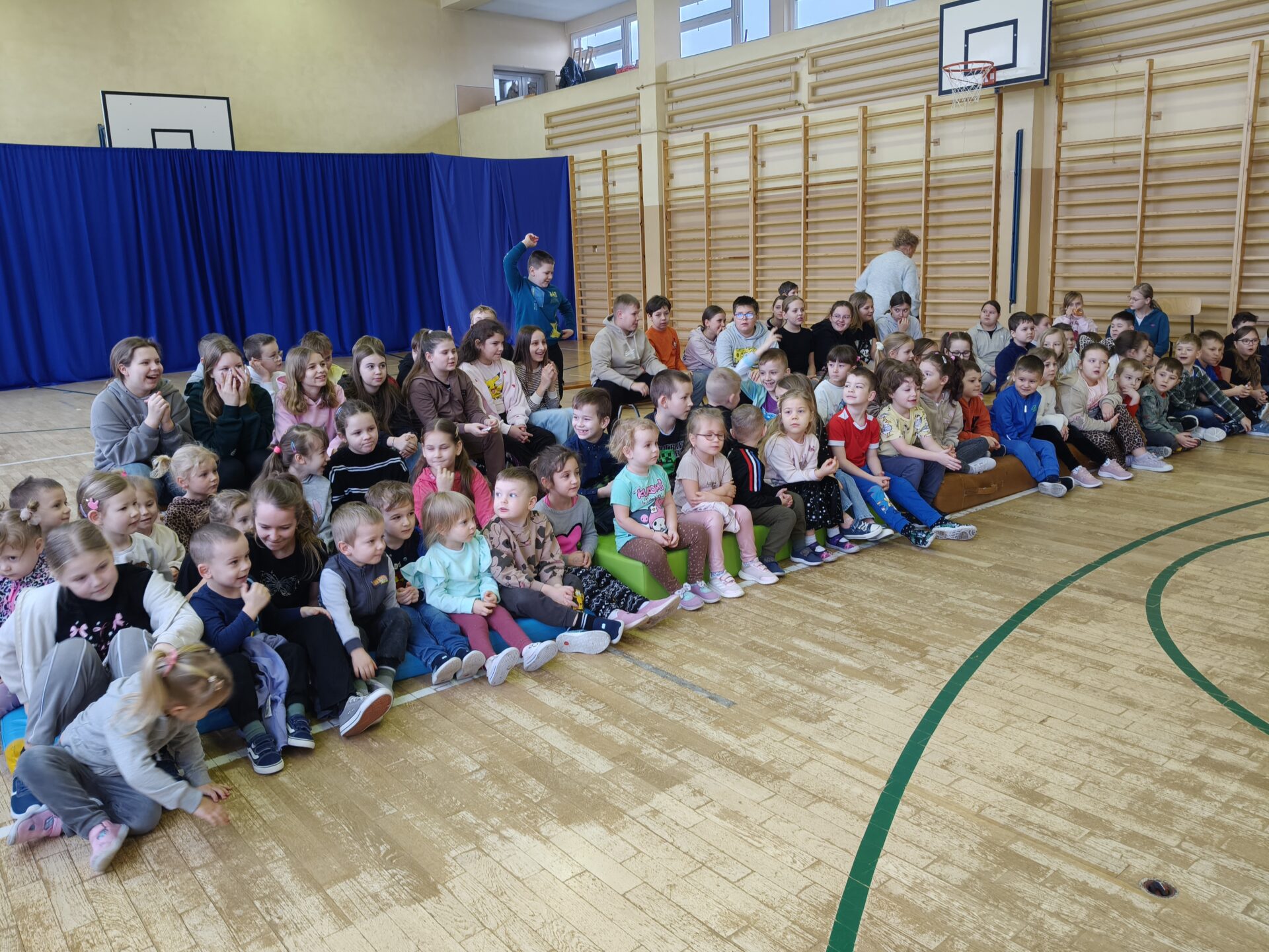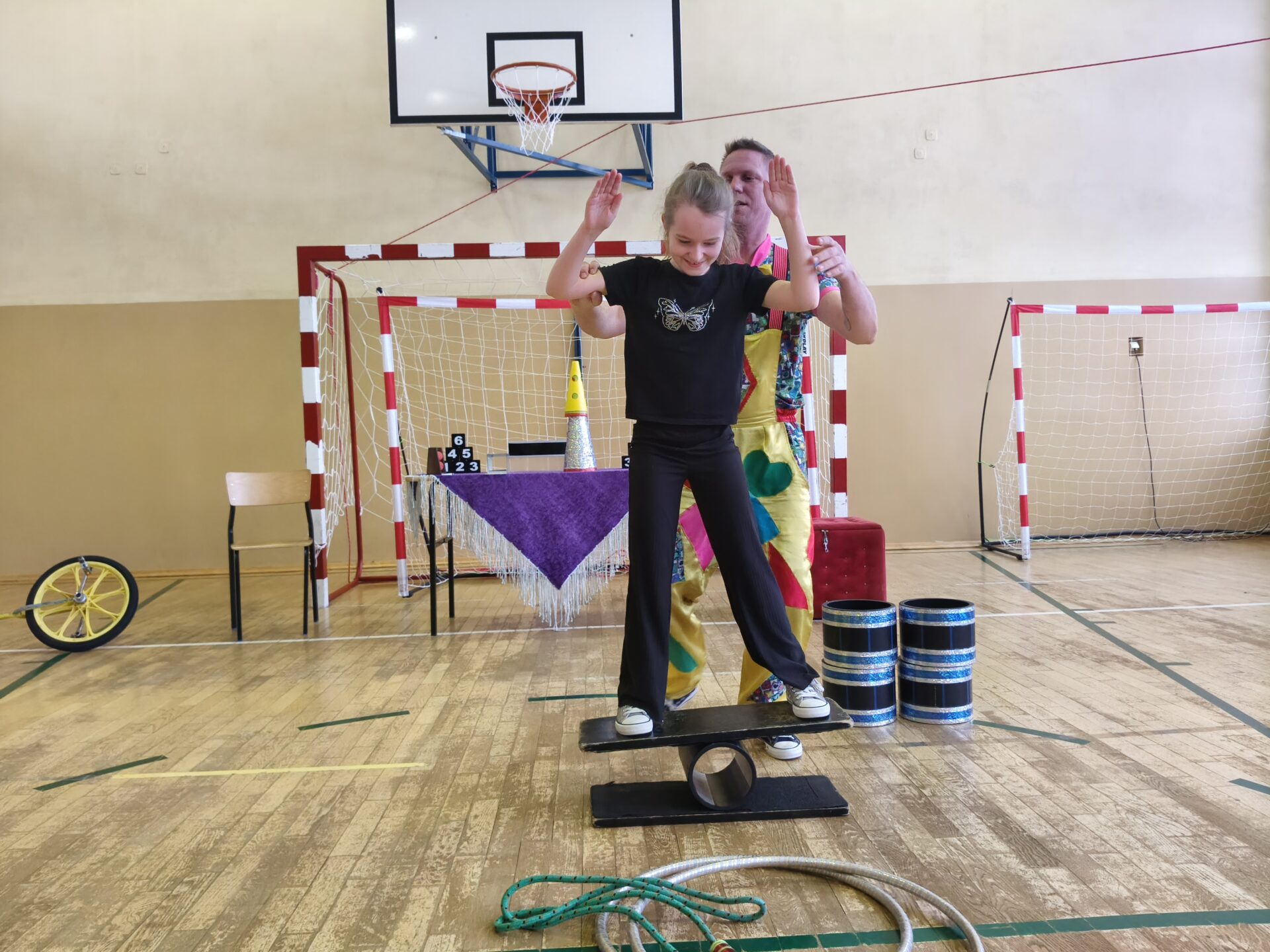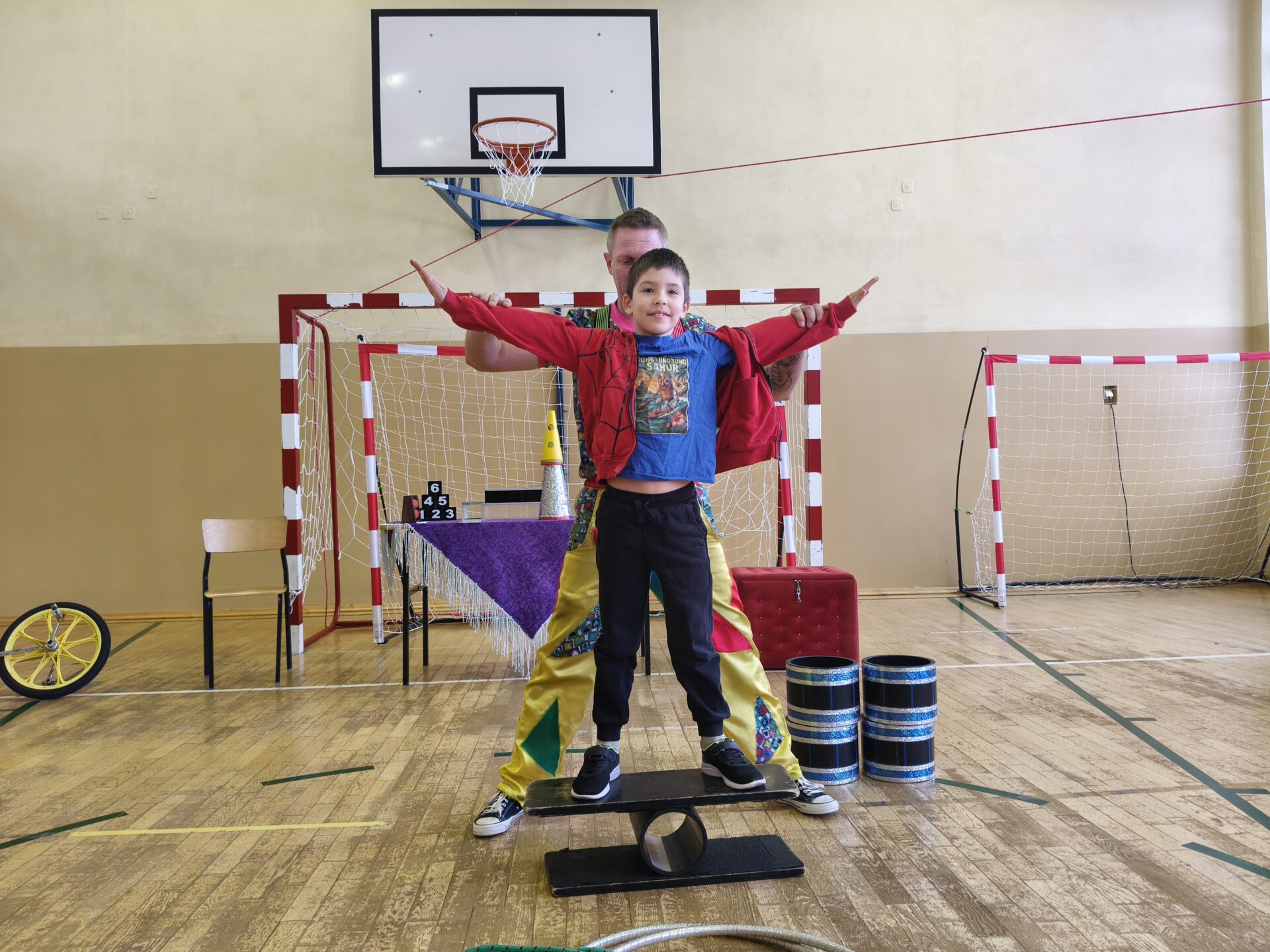 Dzieci z ogromnym zainteresowaniem oglądały barwne pokazy, pełne śmiechu, emocji i niespodzianek. Nie zabrakło akrobacji, sztuczek oraz wesołych występów, które zachwyciły zarówno przedszkolaki, jak i uczniów szkoły.